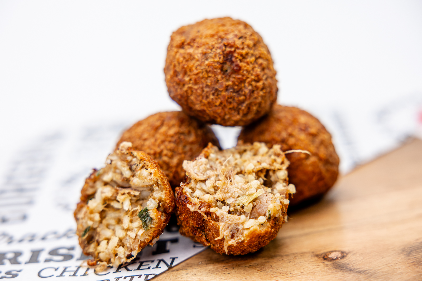 Your Choice of smoked chicken or fried shrimp on top of chopped Romain lettuce, Cheddar & Monterey Jack Cheese, Diced Tomatoes & Crazy Cajun Dressing